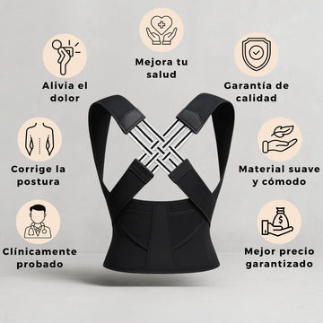 Es un dispositivo de soporte postural que te ayuda a alinear la espalda de manera rápida y cómoda. Está diseñado para brindarte un alivio inmediato mientras mejora tu postura sin que tengas que hacer esfuerzo.